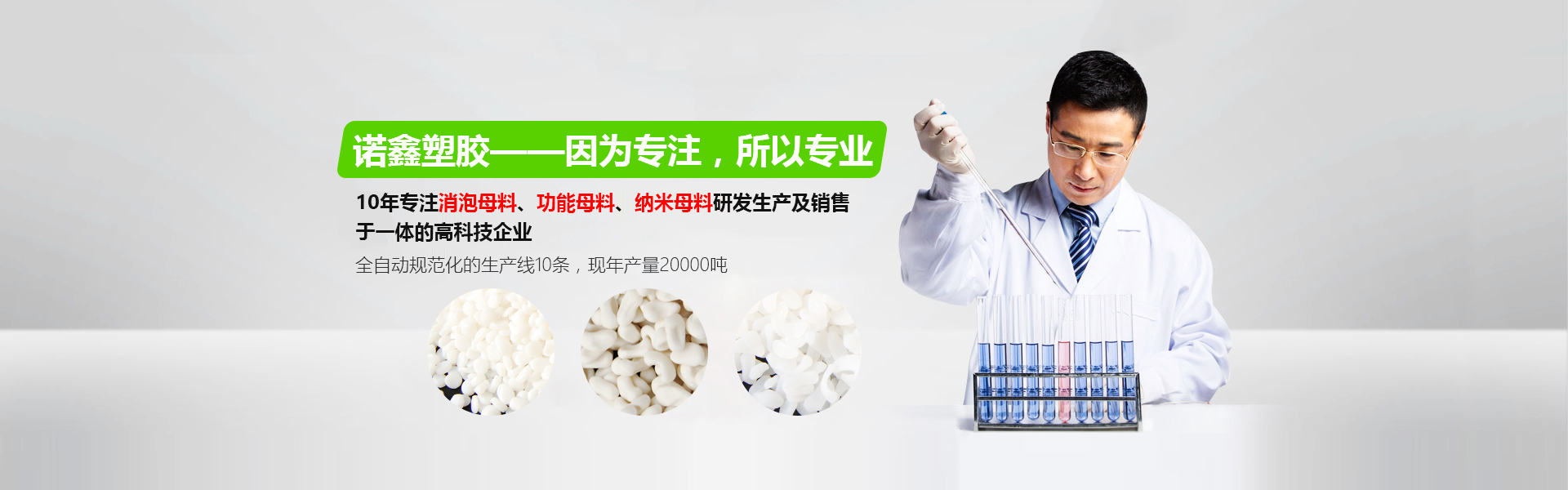 慶云諾鑫塑膠新材料有限公司專業生產納米硫酸鋇多功能填充母料、消泡母粒、色母料、碳酸鈣母料、滑石粉母料等6大類產品。公司實力雄厚,擁有業界專業的檢測設備多臺,專職檢測人員2名,市場調研及產品研發人員12名,全自動規范化的生產線10條,現年產量20000噸,從源頭掌控質量,確保諾鑫高品質。諾鑫公司建立了完善的質量管理體系,我們將不斷致力于壯大與完善,精益求精,不斷推出更多更優的產品投放市場。公司將繼續以市場為導向,以客戶滿意為宗旨,本著“質量為本”、“服務為本”、“誠信為本”的經營方針,秉承專業打造品質的經營理念,精誠合作,求實創新,追求卓越。產品遠銷于各地,得到業界一致認可,客戶的需要是我們一致的追求,諾鑫以穩定的產品質量和完善的產品服務誠邀各界客戶洽談合作......